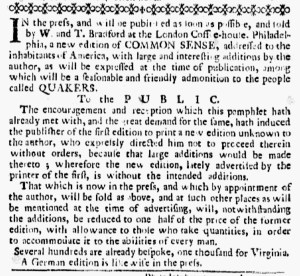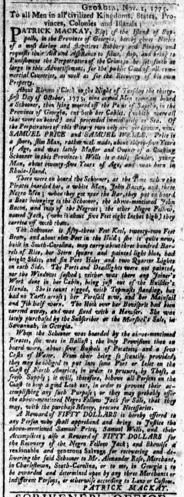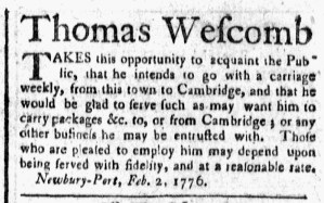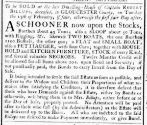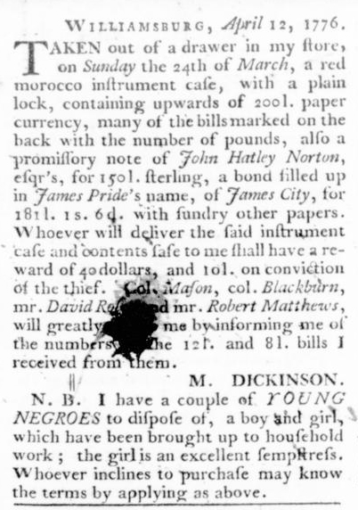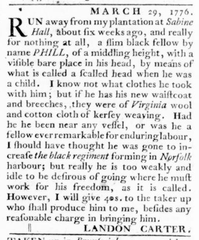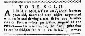 What was advertised in a revolutionary American newspaper 250 years ago today?
