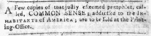 A month after Robert Bell published the first edition of Thomas Paine’s Common Sense in Philadelphia on January 9, 1776, readers of the New-York Journal certainly knew about the pamphlet, even if they had not read it or heard much about its contents. Just reading the newspaper would have been enough to get a sense of the pamphlet’s popularity. After all, the February 15 edition of the New-York Journal carried four advertisements for Common Sense!