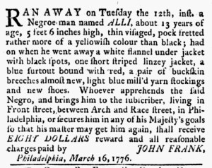 Yet they told only one side of the story … and since husbands refused to pay expenses incurred by their wives that meant that very few of the women featured in such advertisements published responses in the public prints. Alice was an exception. Her own advertisement ran in Pennsylvania Evening Post, declaring that “JOHN ATKINS, by trade a bricklayer, was seen wheeling a wheelbarrow across the Race Ground, for a woman selling liquor and had not been with me for six nights past.” Alice implied that John had been unfaithful or at least inappropriately directed his affections toward another woman. He may even have diverted his time away from earning a living by transporting liquor for the other woman when he should have been on a job. His absence might have been a relief of sorts because, Alice reported, “when he comes home, [John] pulls his wife’s cap and hair up by the root.” Many runaway wife advertisements likely concealed domestic abuse that caused women to flee from their husbands.
