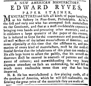 Hall, a savvy entrepreneur, piggybacked on Gill’s advertisement for Morton’s Oration. Immediately below, he inserted his own advertisement for a “Mezzotinto Print of the late Gen. Warren.” He apparently expected that demand for one would enhance demand for the other, providing consumers with another opportunity to demonstrate their patriotism through their decision to purchase commemorative items.