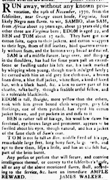 These advertisements also testify to the experiences of enslaved men, women, and children, though readers must consider that those experiences have been remediated through descriptions offered by slaveholders rather than the slaves themselves. Often unnamed in the advertisements, enslaved men, women, and children were not invisible or unimportant in early America.