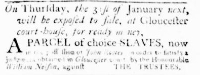 The Slavery Adverts 250 Project chronicles the role of newspaper advertising in perpetuating slavery in the era of the American Revolution. The project seeks to reveal the ubiquity of slavery in eighteenth-century life from New England to Georgia by republishing advertisements for slaves – for sale, wanted to purchase, runaways, captured fugitives – in daily digests on this site as well as in real time via the @SlaveAdverts250 Twitter feed, utilizing twenty-first-century media to stand in for the print media of the eighteenth century.
