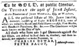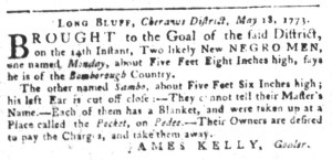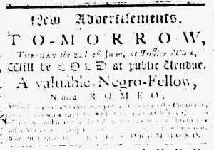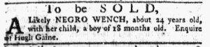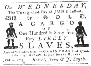 The Slavery Adverts 250 Project chronicles the role of newspaper advertising in perpetuating slavery in the era of the American Revolution. The project seeks to reveal the ubiquity of slavery in eighteenth-century life from New England to Georgia by republishing advertisements about enslaved people – for sale as individuals or in groups, wanted to purchase or for hire for short periods, runaways who liberated themselves, and those who were subsequently captured and confined in jails and workhouses – in daily digests on this site as well as in real time via the @SlaveAdverts250 Twitter feed, utilizing twenty-first-century media to stand in for the print media of the eighteenth century.