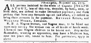 These advertisements appeared in colonial American newspapers 250 years ago today.
