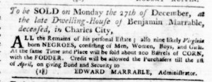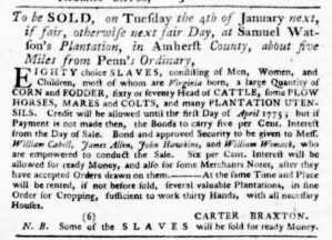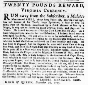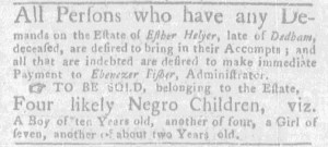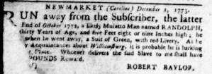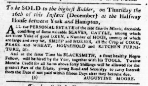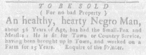 The Slavery Adverts 250 Project chronicles the role of newspaper advertising in perpetuating slavery in the era of the American Revolution. The project seeks to reveal the ubiquity of slavery in eighteenth-century life from New England to Georgia by republishing advertisements about enslaved people – for sale as individuals or in groups, wanted to purchase or for hire for short periods, runaways who liberated themselves, and those who were subsequently captured and confined in jails and workhouses – in daily digests on this site as well as in real time via the @SlaveAdverts250 Twitter feed, utilizing twenty-first-century media to stand in for the print media of the eighteenth century.