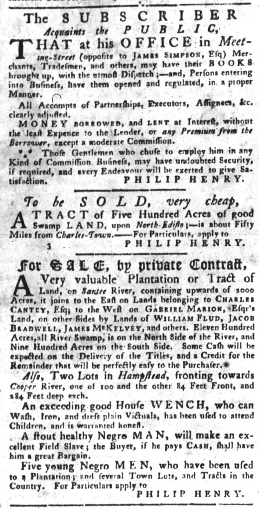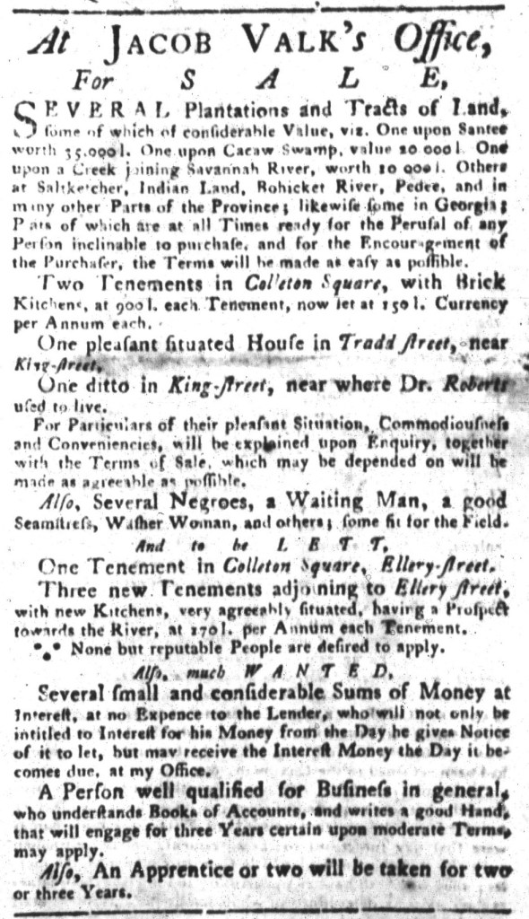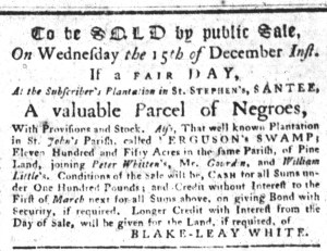 South-Carolina Gazette (December 6, 1773).