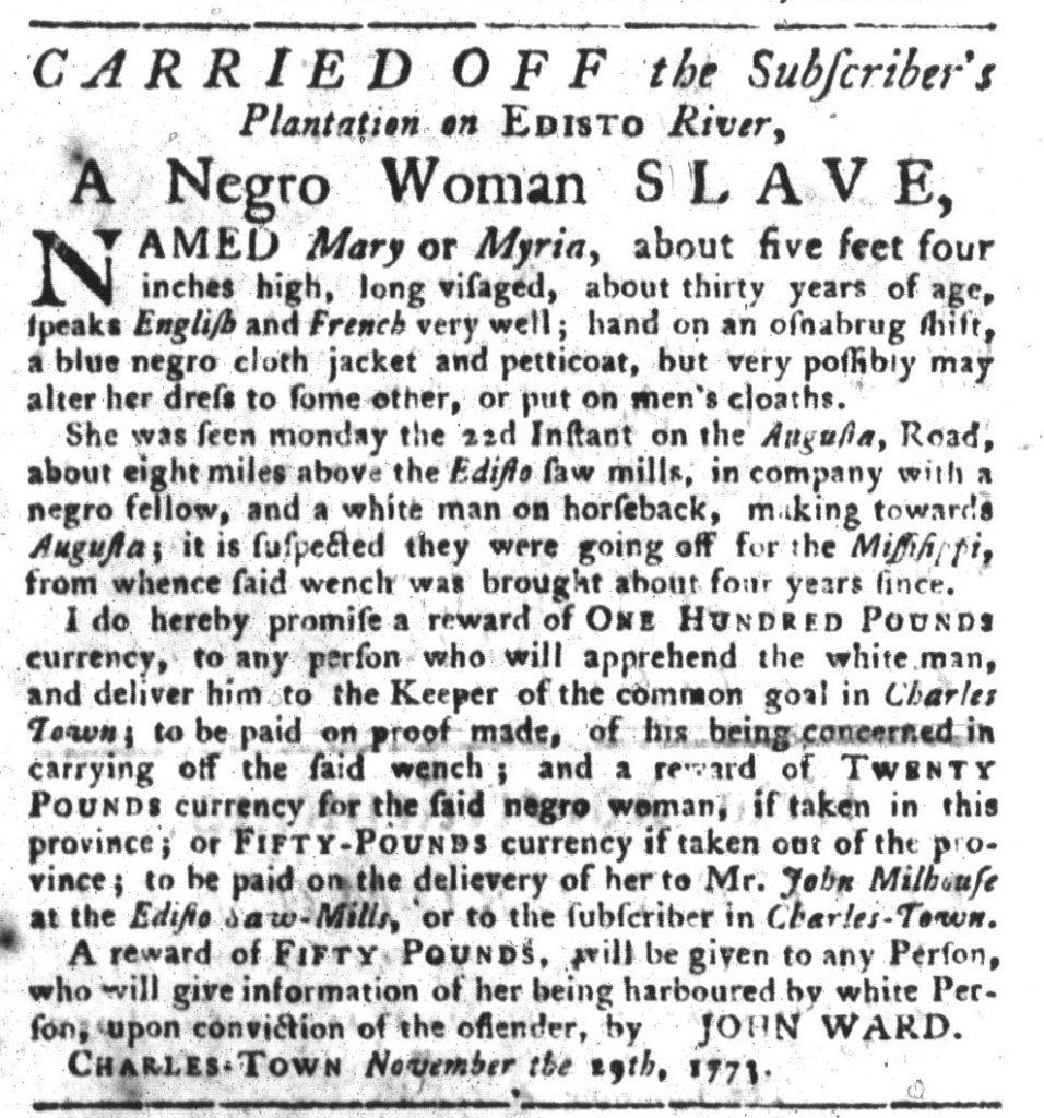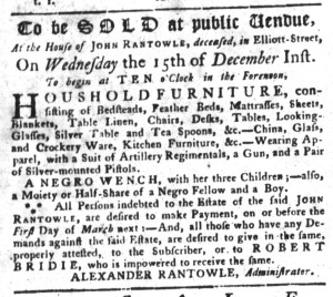 Slavery Advertisements Published December 6, 1773