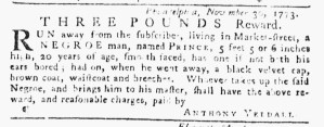 Slavery Advertisements Published December 8, 1773