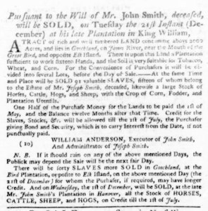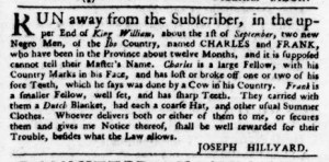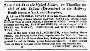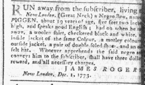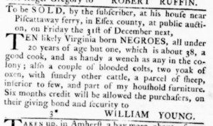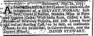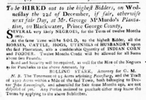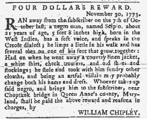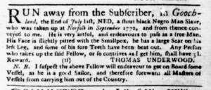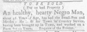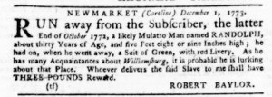 The Slavery Adverts 250 Project chronicles the role of newspaper advertising in perpetuating slavery in the era of the American Revolution. The project seeks to reveal the ubiquity of slavery in eighteenth-century life from New England to Georgia by republishing advertisements about enslaved people – for sale as individuals or in groups, wanted to purchase or for hire for short periods, runaways who liberated themselves, and those who were subsequently captured and confined in jails and workhouses – in daily digests on this site as well as in real time via the @SlaveAdverts250 Twitter feed, utilizing twenty-first-century media to stand in for the print media of the eighteenth century.