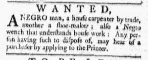 These advertisements appeared in colonial American newspapers 250 years ago today.