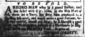 At first glance, an advertisement for a “FINE assortment of ENGLISH and INDIA GOODS,” including kersey cloth, may not seem to have much to do with slavery in New England. As she undertook her research, Madeleine made the connections, learning about both textiles used to clothe enslaved people and how the transatlantic slave trade contributed to commerce and consumer culture in Rhode Island before, during, and after the American Revolution. Bours was not alone in advertising imported goods; John Bell, Samuel Goldthwait, Thomas Green, George Lawton and Robert Lawton, Paul Mumford, and Jonathan Rogers placed similar advertisements. All of them participated in commercial networks inextricably bound to the transatlantic slave trade. Eighteenth-century readers knew that was the case. Advertisements offering enslaved people for sale that appeared alongside notices placed by merchants and shopkeepers served as a very visible reminder.