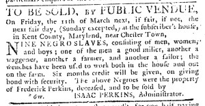 The Slavery Adverts 250 Project chronicles the role of newspaper advertising in perpetuating slavery in the era of the American Revolution. The project seeks to reveal the ubiquity of slavery in eighteenth-century life from New England to Georgia by republishing advertisements about enslaved people – for sale as individuals or in groups, wanted to purchase or for hire for short periods, runaways who liberated themselves, and those who were subsequently captured and confined in jails and workhouses – in daily digests on this site as well as in real time via the @SlaveAdverts250 Twitter feed, utilizing twenty-first-century media to stand in for the print media of the eighteenth century.