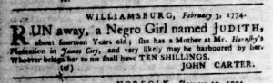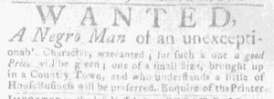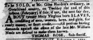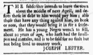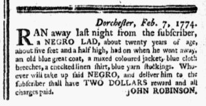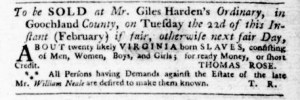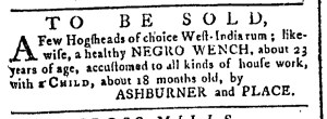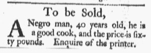 The Slavery Adverts 250 Project chronicles the role of newspaper advertising in perpetuating slavery in the era of the American Revolution. The project seeks to reveal the ubiquity of slavery in eighteenth-century life from New England to Georgia by republishing advertisements about enslaved people – for sale as individuals or in groups, wanted to purchase or for hire for short periods, runaways who liberated themselves, and those who were subsequently captured and confined in jails and workhouses – in daily digests on this site as well as in real time via the @SlaveAdverts250 Twitter feed, utilizing twenty-first-century media to stand in for the print media of the eighteenth century.