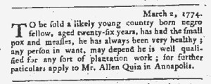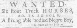 These advertisements appeared in colonial American newspapers 250 years ago today.