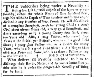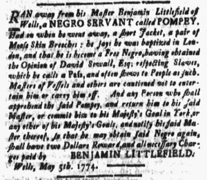 Who was the subject of an advertisement in a colonial American newspaper 250 years ago today?