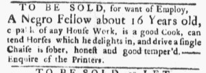 These advertisements appeared in colonial American newspapers 250 years ago today.