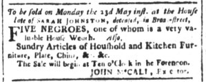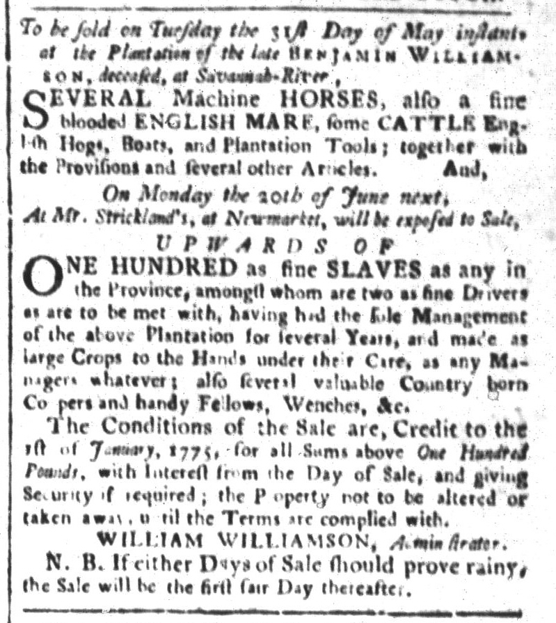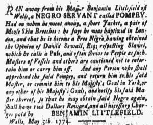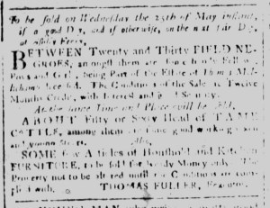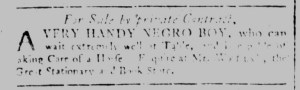 The Slavery Adverts 250 Project chronicles the role of newspaper advertising in perpetuating slavery in the era of the American Revolution. The project seeks to reveal the ubiquity of slavery in eighteenth-century life from New England to Georgia by republishing advertisements about enslaved people – for sale as individuals or in groups, wanted to purchase or for hire for short periods, runaways who liberated themselves, and those who were subsequently captured and confined in jails and workhouses – in daily digests on this site as well as in real time via the @SlaveAdverts250 Twitter feed, utilizing twenty-first-century media to stand in for the print media of the eighteenth century.