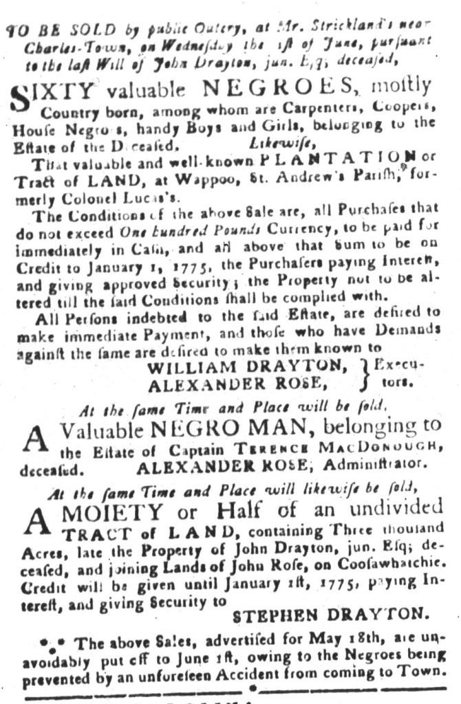 These advertisements appeared in colonial American newspapers 250 years ago today.