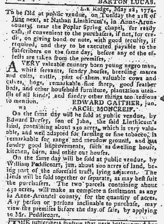 Virginia Gazette [Purdie and Dixon] (June 9, 1774).