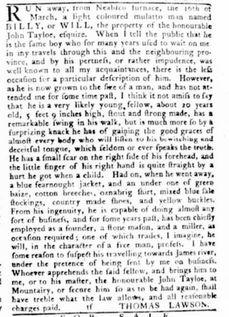 These advertisements also testify to the experiences of enslaved men, women, and children, though readers must consider that those experiences have been remediated through descriptions offered by enslavers rather than enslaved people themselves. Often unnamed in the advertisements, enslaved men, women, and children were not invisible or unimportant in early America.