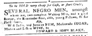 The Slavery Adverts 250 Project chronicles the role of newspaper advertising in perpetuating slavery in the era of the American Revolution. The project seeks to reveal the ubiquity of slavery in eighteenth-century life from New England to Georgia by republishing advertisements about enslaved people – for sale as individuals or in groups, wanted to purchase or for hire for short periods, runaways who liberated themselves, and those who were subsequently captured and confined in jails and workhouses – in daily digests on this site as well as in real time via the @SlaveAdverts250 Twitter feed, utilizing twenty-first-century media to stand in for the print media of the eighteenth century.