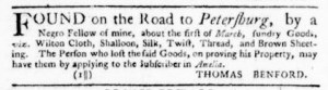 These advertisements appeared in colonial American newspapers 250 years ago today.