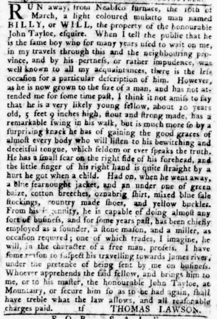 These advertisements also testify to the experiences of enslaved men, women, and children, though readers must consider that those experiences have been remediated through descriptions offered by enslavers rather than enslaved people themselves. Often unnamed in the advertisements, enslaved men, women, and children were not invisible or unimportant in early America.