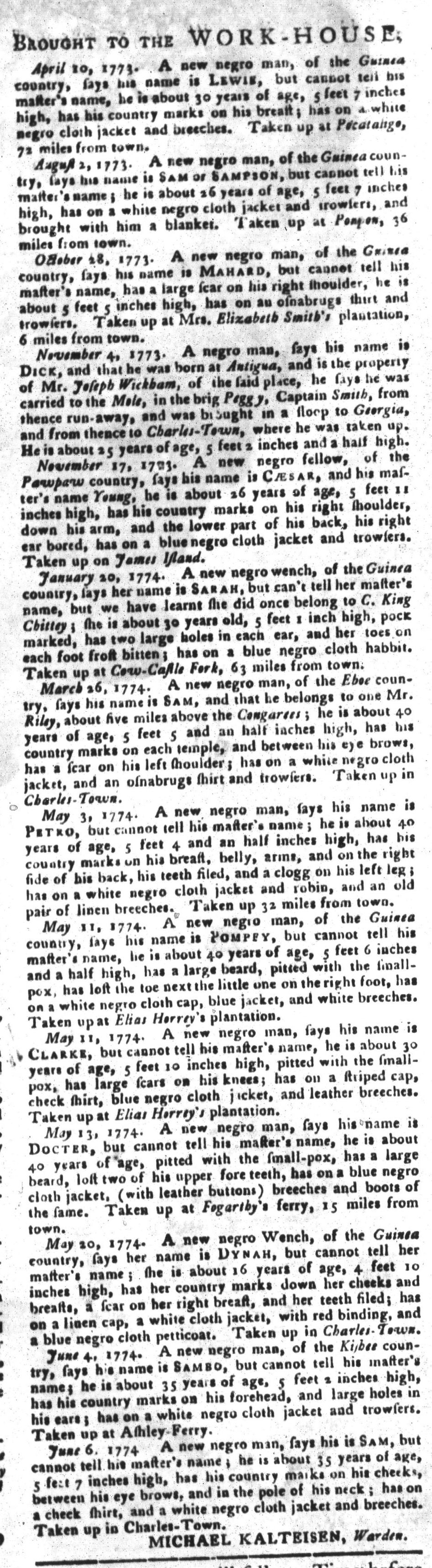 Slavery Advertisements Published June 21, 1774