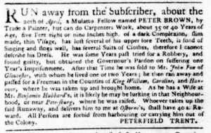 These advertisements appeared in colonial American newspapers 250 years ago today.
