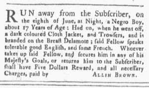 Slavery Advertisements Published June 25, 1774