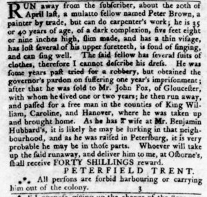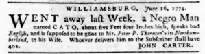 These advertisements appeared in colonial American newspapers 250 years ago today.