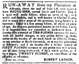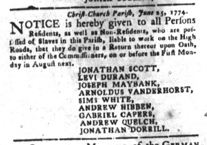 The Slavery Adverts 250 Project chronicles the role of newspaper advertising in perpetuating slavery in the era of the American Revolution. The project seeks to reveal the ubiquity of slavery in eighteenth-century life from New England to Georgia by republishing advertisements about enslaved people – for sale as individuals or in groups, wanted to purchase or for hire for short periods, runaways who liberated themselves, and those who were subsequently captured and confined in jails and workhouses – in daily digests on this site as well as in real time via the @SlaveAdverts250 Twitter feed, utilizing twenty-first-century media to stand in for the print media of the eighteenth century.