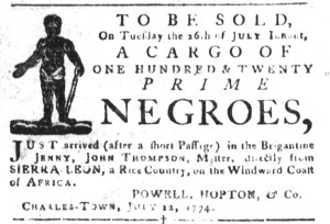 South-Carolina Gazette and Country Journal (July 12, 1774).