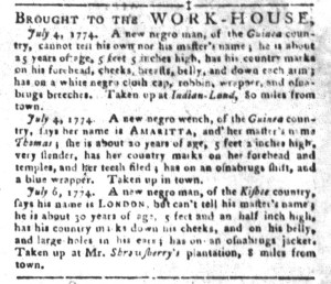 Slavery Advertisements Published July 12, 1774