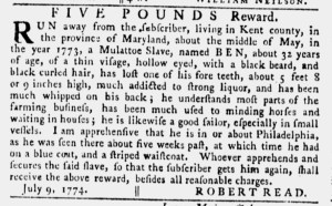 The Slavery Adverts 250 Project chronicles the role of newspaper advertising in perpetuating slavery in the era of the American Revolution. The project seeks to reveal the ubiquity of slavery in eighteenth-century life from New England to Georgia by republishing advertisements about enslaved people – for sale as individuals or in groups, wanted to purchase or for hire for short periods, runaways who liberated themselves, and those who were subsequently captured and confined in jails and workhouses – in daily digests on this site as well as in real time via the @SlaveAdverts250 Twitter feed, utilizing twenty-first-century media to stand in for the print media of the eighteenth century.