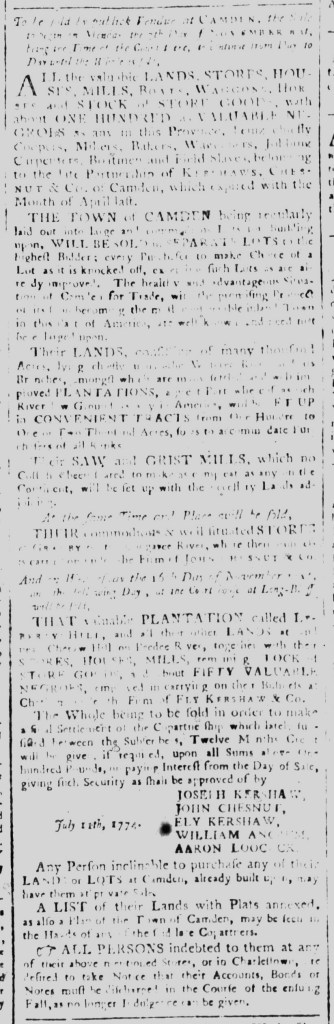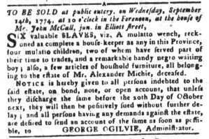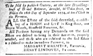 Eighteenth-century advertisers often used the space they purchased in newspapers to pursue multiple purchases. Merchants and shopkeepers, for instance, frequently devoted most of their advertisements to promoting goods for sale and then pivoted to calling on former customers to settle accounts. Sometimes the aims of the different portions of advertisements did not seem related at all. J. Musgrave devoted half of his advertisement in the August 31, 1774, edition of the Pennsylvania Gazette to leasing his “Wet and Dry Goods Houses and Stores” to merchants and the other half to buying and selling horses.