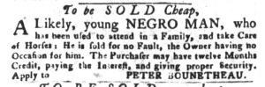 What was advertised in a colonial American newspaper 250 years ago today?