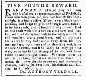 These advertisements appeared in colonial American newspapers 250 years ago today.