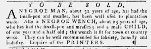 Slavery Advertisements Published August 3, 1774