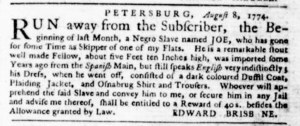 These advertisements appeared in colonial American newspapers 250 years ago today.