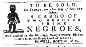 What was advertised in a colonial American newspaper 250 years ago today?
