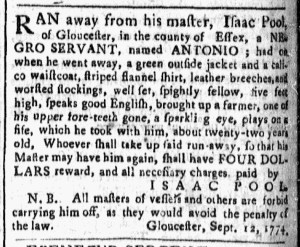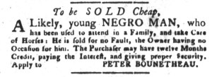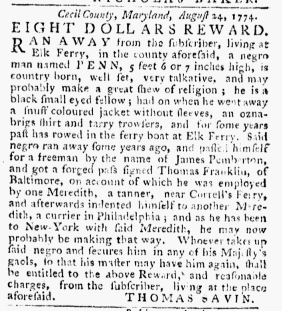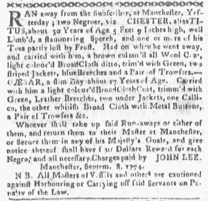 At the end of September 1774, Jesse Leavenworth placed an advertisement in the Connecticut Journal and New-Haven Post-Boy to give directions for finding and hiring “the ferryman … in the east side of the New Ferry” since there had recently been some confusion that caused frustration, inconvenience, and delays. In addition, he briefly noted, “Yesterday let himself to me a lusty negro man, about 23 or 24 years old, speaks the Portuguese language, and but little English.” In other words, Leavenworth had hired a Black man, yet he had concerns about whether that man was free to make contracts for his labor or had seized his liberty by running away from an enslaver. In the absence of evidence that the Black man was indeed a fugitive seeking freedom, Leavenworth hired him, yet he also alerted the public in case anyone had more information or was looking for a young Black man who spoke Portuguese an not much English.