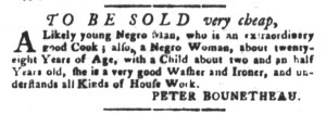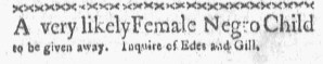 Leavenworth could have taken similar action, delivering the unnamed Black man to the jail in New Haven and placing an advertisement for his enslaver to claim him. Such advertisements appeared with regularity, most often in southern colonies and occasionally in New England. They demonstrated the precariousness of living their everyday lives that Black people, including free Black men and women, faced since they could be imprisoned solely on the suspicion that they might be enslaved people who escaped from their enslavers. Although Leavenworth chose to hire rather than imprison the young Black man who spoke Portuguese, his simultaneous decision to make an announcement in the newspaper also testified to the level of suspicion that Black people encountered as well as how colonizers used the power of the press to regulate them.