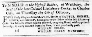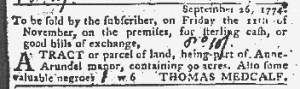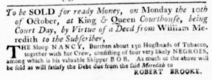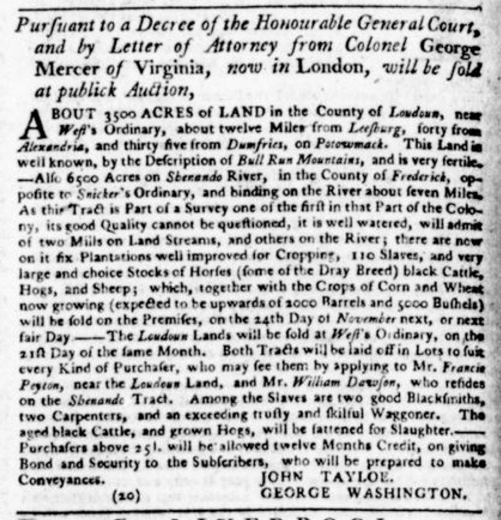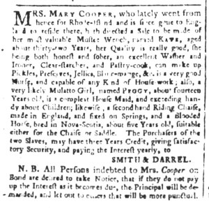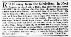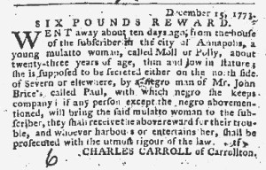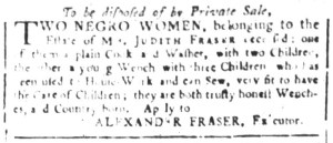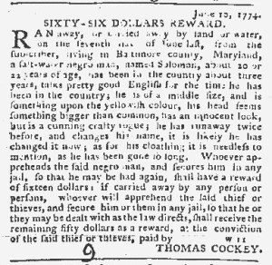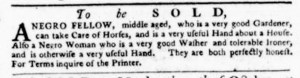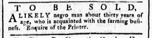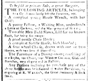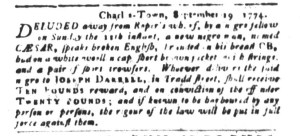 Who was the subject of an advertisement in a colonial American newspaper 250 years ago today?