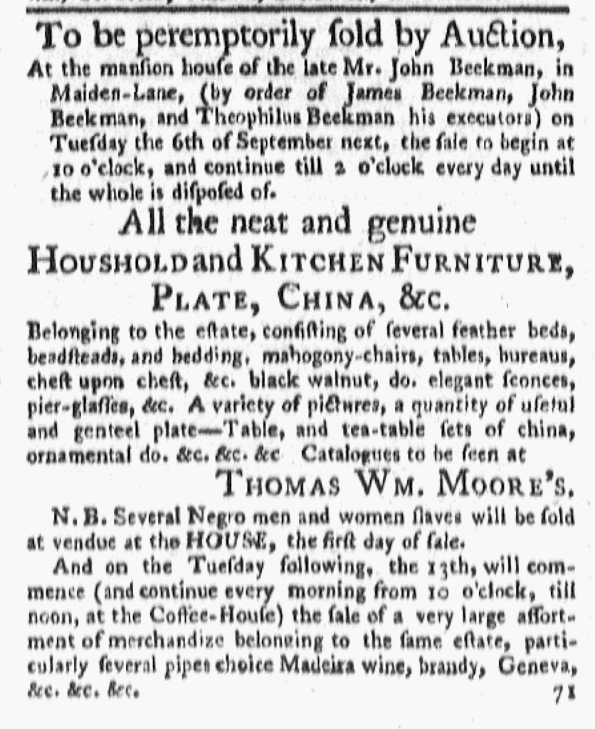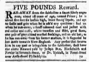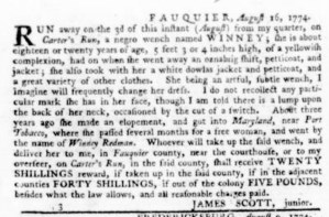 The Slavery Adverts 250 Project chronicles the role of newspaper advertising in perpetuating slavery in the era of the American Revolution. The project seeks to reveal the ubiquity of slavery in eighteenth-century life from New England to Georgia by republishing advertisements about enslaved people – for sale as individuals or in groups, wanted to purchase or for hire for short periods, runaways who liberated themselves, and those who were subsequently captured and confined in jails and workhouses – in daily digests on this site as well as in real time via the @SlaveAdverts250 Twitter feed, utilizing twenty-first-century media to stand in for the print media of the eighteenth century.