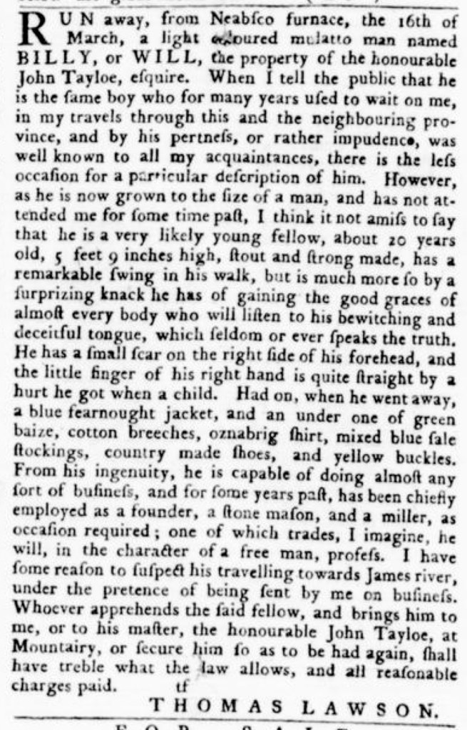 These advertisements also testify to the experiences of enslaved men, women, and children, though readers must consider that those experiences have been remediated through descriptions offered by enslavers rather than enslaved people themselves. Often unnamed in the advertisements, enslaved men, women, and children were not invisible or unimportant in early America.