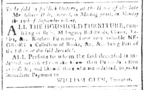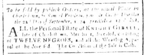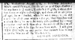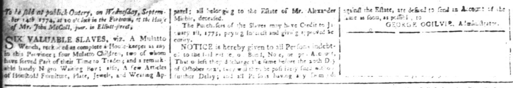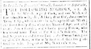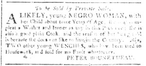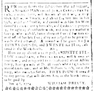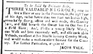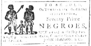 The Slavery Adverts 250 Project chronicles the role of newspaper advertising in perpetuating slavery in the era of the American Revolution. The project seeks to reveal the ubiquity of slavery in eighteenth-century life from New England to Georgia by republishing advertisements about enslaved people – for sale as individuals or in groups, wanted to purchase or for hire for short periods, runaways who liberated themselves, and those who were subsequently captured and confined in jails and workhouses – in daily digests on this site as well as in real time via the @SlaveAdverts250 Twitter feed, utilizing twenty-first-century media to stand in for the print media of the eighteenth century.