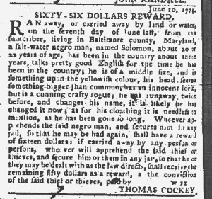 These advertisements appeared in colonial American newspapers 250 years ago today.