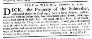 The Slavery Adverts 250 Project chronicles the role of newspaper advertising in perpetuating slavery in the era of the American Revolution. The project seeks to reveal the ubiquity of slavery in eighteenth-century life from New England to Georgia by republishing advertisements about enslaved people – for sale as individuals or in groups, wanted to purchase or for hire for short periods, runaways who liberated themselves, and those who were subsequently captured and confined in jails and workhouses – in daily digests on this site as well as in real time via the @SlaveAdverts250 Twitter feed, utilizing twenty-first-century media to stand in for the print media of the eighteenth century.