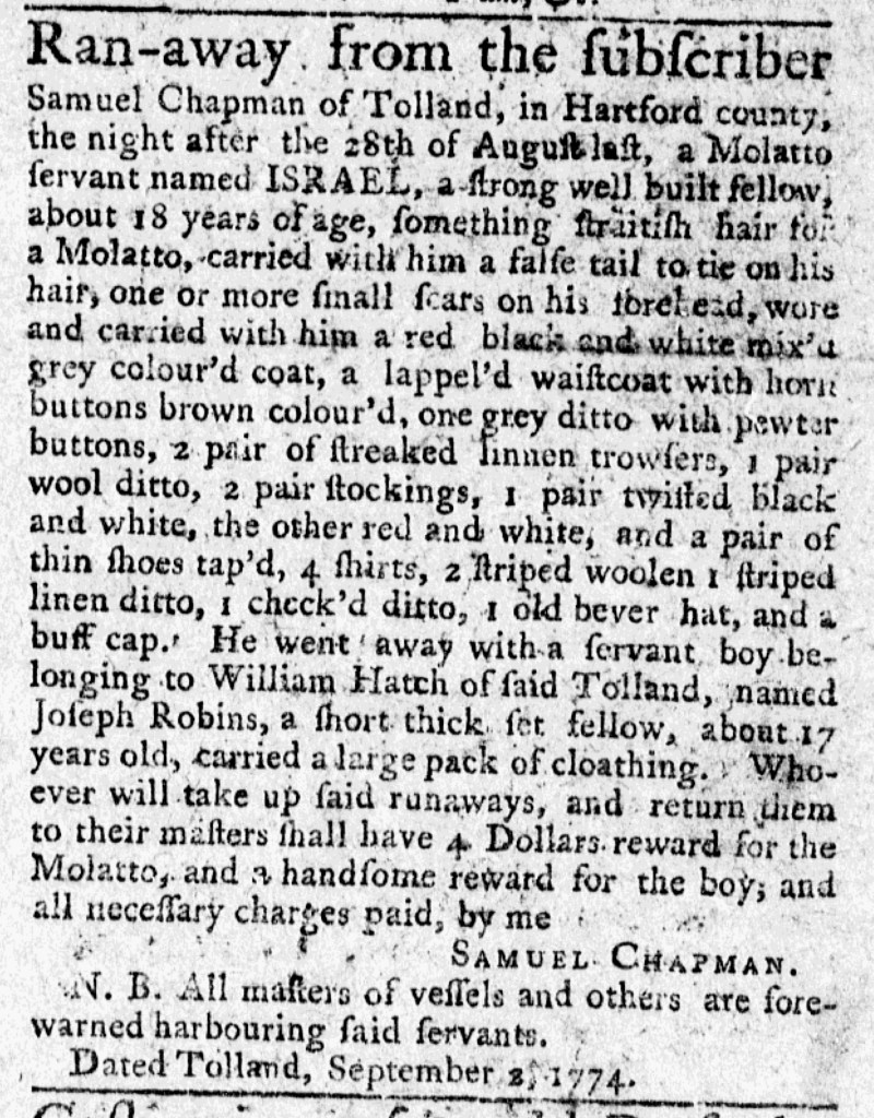 These advertisements appeared in colonial American newspapers 250 years ago today.